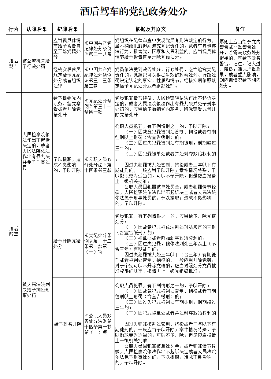 酒后駕車的黨紀(jì)政務(wù)處分