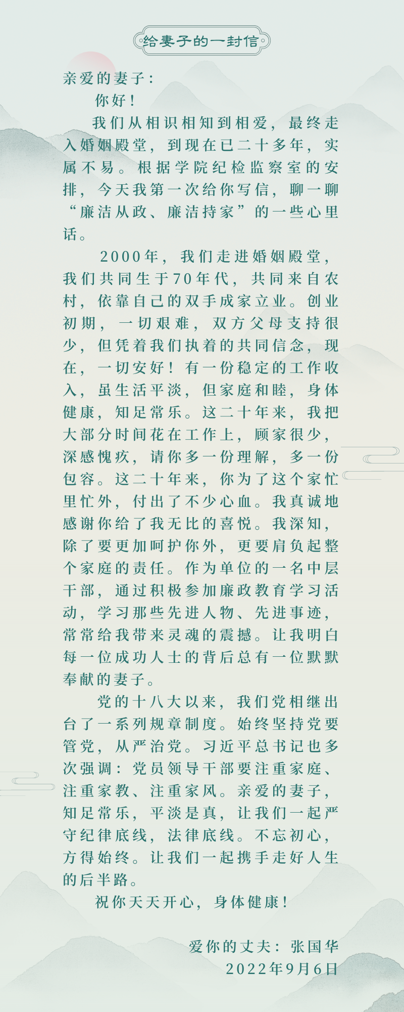 清廉學(xué)校——書記、院長(zhǎng)評(píng)家書(七)|副院長(zhǎng)歐陽(yáng)智勇同志評(píng)家書:修身齊家守清廉