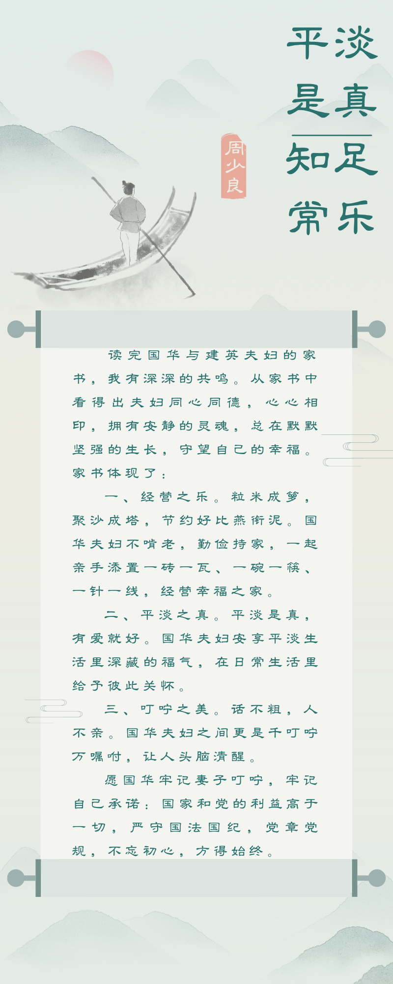 清廉學(xué)?!獣?、院長(zhǎng)評(píng)家書(八)|副院長(zhǎng)周少良同志評(píng)家書:平淡是真 知足常樂(lè)