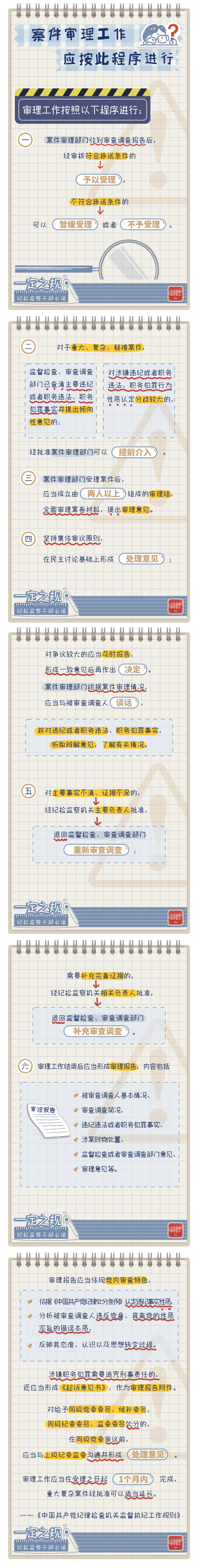 (四)堅持集體審議原則,在民主討論基礎(chǔ)上形成處理意見;對爭議較大的應(yīng)當(dāng)及時報告,形成一致意見后再作出決定。案件審理部門根據(jù)案件審理情況,應(yīng)當(dāng)與被審查調(diào)查人談話,核對違紀(jì)或者職務(wù)違法、職務(wù)犯罪事實,聽取辯解意見,了解有關(guān)情況。