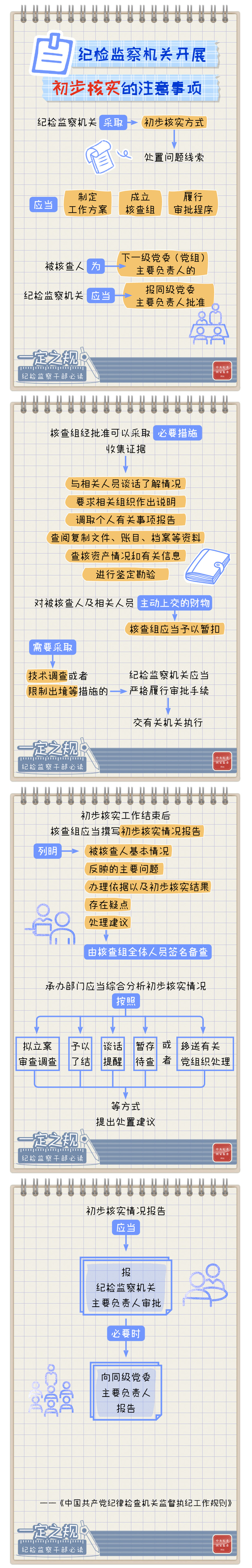 初步核實情況報告應(yīng)當(dāng)報紀(jì)檢監(jiān)察機(jī)關(guān)主要負(fù)責(zé)人審批,必要時向同級黨委主要負(fù)責(zé)人報告。