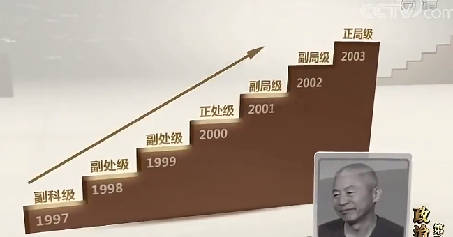 【解說(shuō)詞】1997年到2003年,是盧恩光仕途的高速發(fā)展期。這段時(shí)期,他一年換一崗,六年提六級(jí),從鄉(xiāng)到縣再到省再到北京,從副科級(jí)到正局級(jí),火箭速度的背后是金錢(qián)助推。