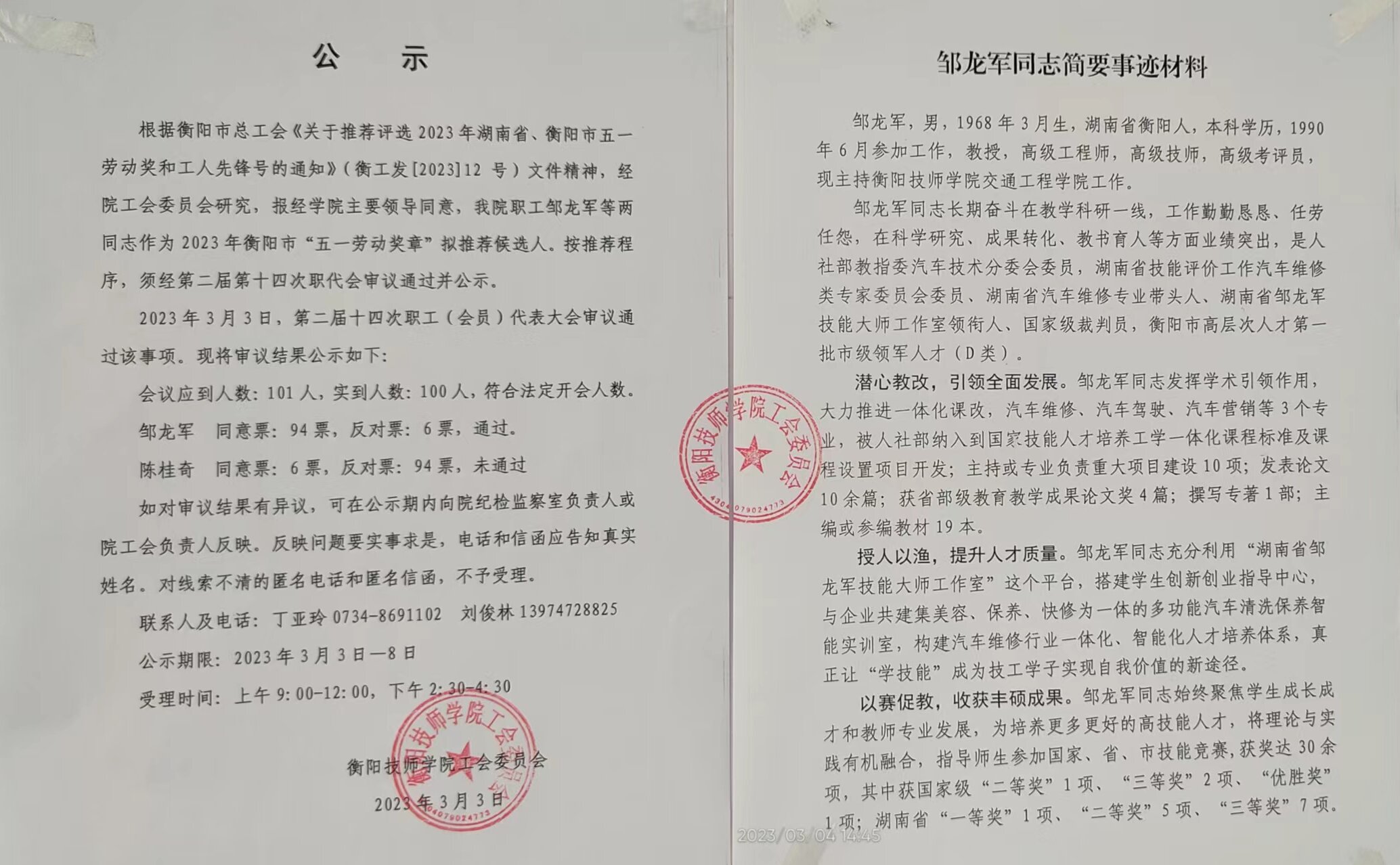衡陽(yáng)技師學(xué)院2023年衡陽(yáng)市五一勞動(dòng)獎(jiǎng)?wù)聰M推薦候選人公示
