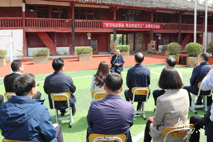 周永開(kāi)在巴中市巴州區(qū)化成小學(xué)給紀(jì)檢監(jiān)察干部講黨課。
