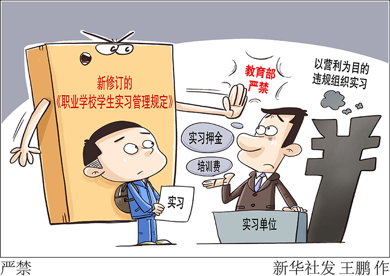 任何單位或部門不得干預(yù)職業(yè)學(xué)校正常安排和實(shí)施實(shí)習(xí)計(jì)劃,不得強(qiáng)制職業(yè)學(xué)校安排學(xué)生到指定單位實(shí)習(xí)。