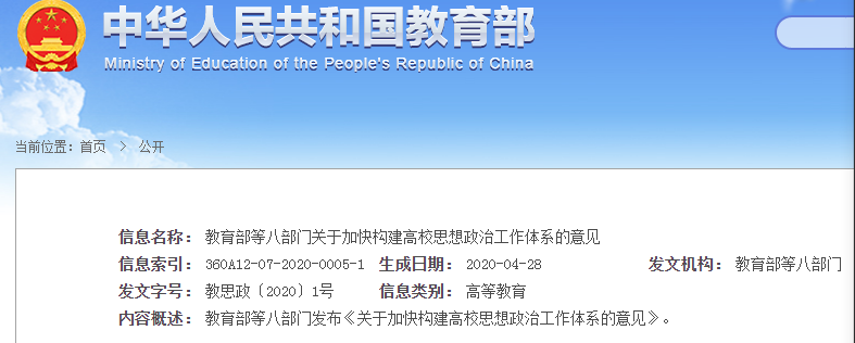 教育部等八部門關于加快構建高校思想政治工作體系的意見