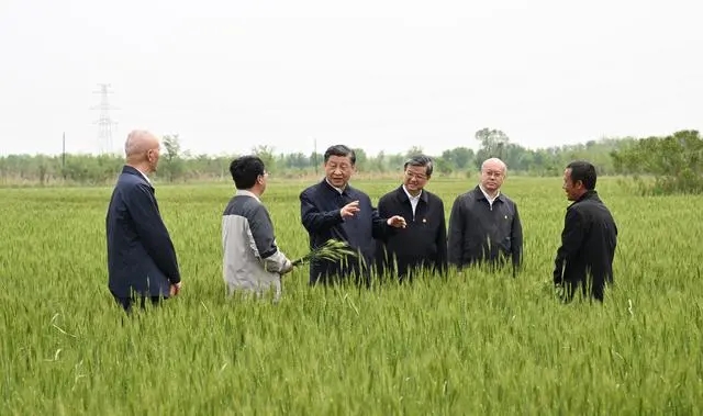 5月11日,習(xí)近平總書記考察河北滄州黃驊市舊城鎮(zhèn)仙莊片區(qū)旱堿地麥田,了解當(dāng)?shù)睾祲A麥種植推廣及產(chǎn)業(yè)化等情況。新華社記者 李學(xué)仁 攝