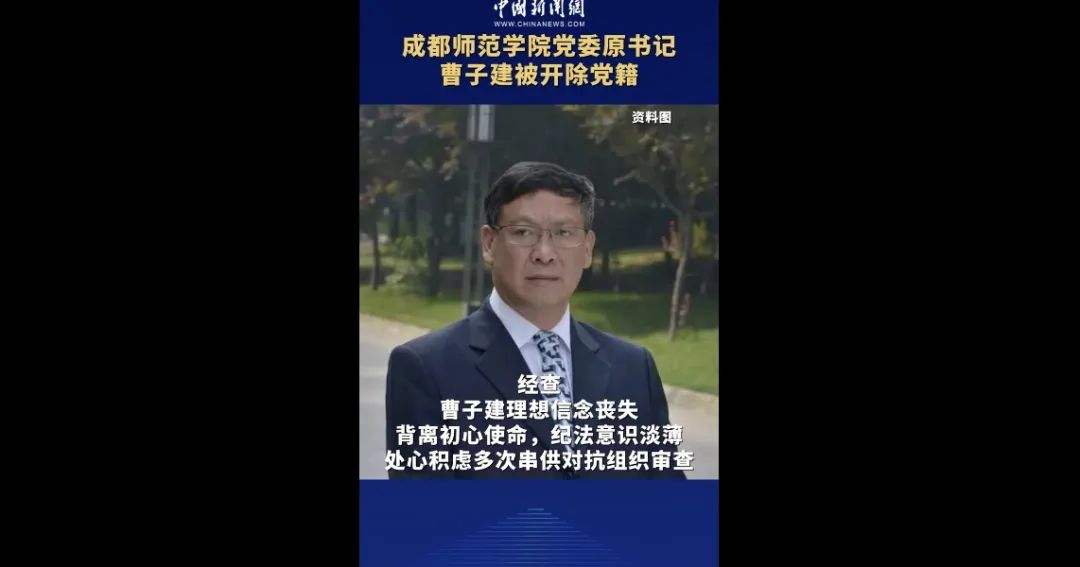 成都師范學(xué)院黨委原書(shū)記曹子建涉嫌嚴(yán)重違紀(jì)違法,目前正接受紀(jì)律審查和監(jiān)察調(diào)查。