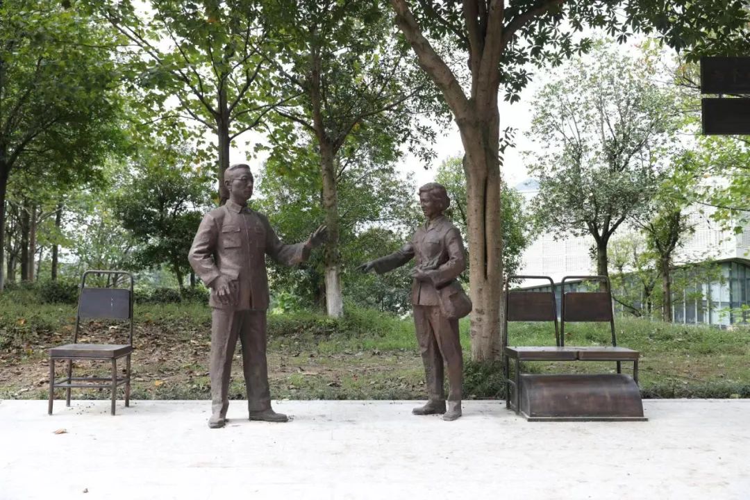 沿著校園文化景觀中軸線徐徐向前,便是主題公園“陶園”,一座名為“兩個口袋”的廉潔文化雕塑映入眼簾。“這座雕塑表現(xiàn)的是1938年陶行知為籌資辦學(xué)外出募捐,他把捐款放入一只口袋,把私款放在另一只口袋,后來私款耗盡買不了車票,于是步行十里回校的故事。”杭科院紀(jì)委書記王鵬宇介紹道。雕塑栩栩如生,陶行知一手捂住裝滿公款的口袋,一手婉拒到站的公交車,清正廉潔、公私分明的形象就這樣走入了每一個杭科院師生的心里,成為“清廉杭科院”建設(shè)的鮮明底色與傳承基因。