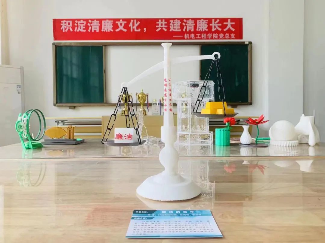 《廉尺》《荷竹之廉》《清廉號(hào)》……當(dāng)清廉與3D打印、激光切割“碰撞”,會(huì)擦出怎樣的火花?前不久,在長(zhǎng)沙學(xué)院校園廉潔文化3D建模大賽中,一件件主旨鮮明、富有創(chuàng)意的工藝作品從學(xué)生手中誕生,讓廉潔文化可觀可感可觸。