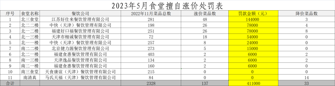 近期,接到多起學生投訴食堂菜價高的反映,學校高度重視。經(jīng)查發(fā)現(xiàn)個別食堂確實存在對部分菜品未經(jīng)報審擅自漲價的行為。 經(jīng)研究決定,對擅自漲價食堂和業(yè)務(wù)管理人員嚴肅處理,具體措施如下: 1. 對擅自漲價菜品的當事食堂按照每漲價一個菜品罰款3000元的額度進行罰款處理,要求立刻下調(diào)價格并在食堂價目表顯示。對降價菜品較多的南校區(qū)清真食堂獎勵2000元。所罰款項納入餐飲管理中心獎罰基金,專款專用,用于改善學生膳食工作。 2. 對負有具體監(jiān)管職責的餐飲管理中心食堂管理專員4人,每人罰款2000元。 3. 相關(guān)處罰情況餐飲管理中心將函告各餐飲公司總部,要求各總部提出強化管理整改措施。 中航大產(chǎn)業(yè)公司餐飲管理中心歡迎廣大師生持續(xù)對餐飲管理工作提出寶貴的意見和建議,促進餐飲服務(wù)保障工作高質(zhì)量發(fā)展。同時餐飲管理中心會以本次檢查通報為契機,堅持問題導向和目標導向,繼續(xù)增強服務(wù)師生意識,積極主動回應師生訴求,進一步加強服務(wù)監(jiān)管水平。 中航大產(chǎn)業(yè)公司餐飲管理中心 2023-6-5