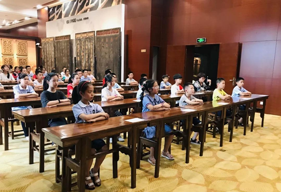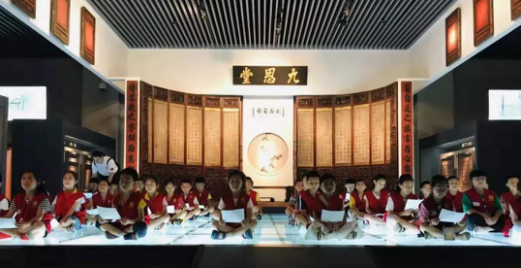 “良冶之子,必學(xué)為裘;良弓之子,必學(xué)為箕。”圖為小記者在八德講堂,聽授課老師解讀家訓(xùn)館里珍藏的雕花板的家訓(xùn)故事。