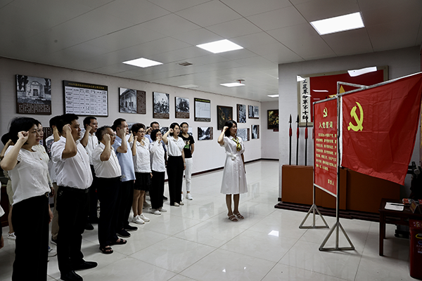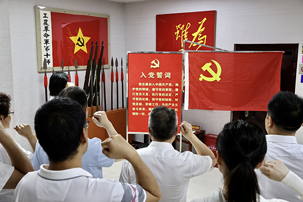 “我志愿加入中國共產(chǎn)黨,擁護黨的綱領(lǐng),遵守黨的章程……”在黨支部書記的帶領(lǐng)下,面對鮮紅的黨旗重溫入黨誓詞,牢記共產(chǎn)黨員的政治責任和歷史使命,永葆共產(chǎn)黨員的政治本色。