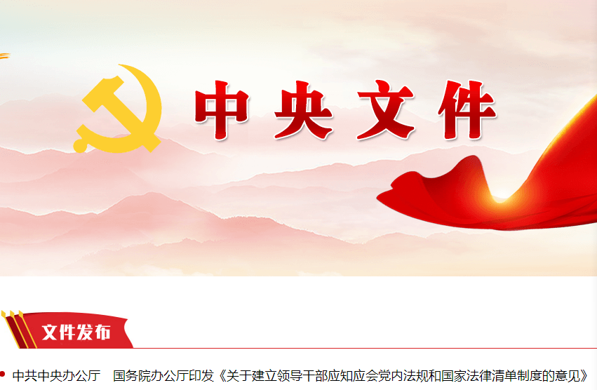 近日,中共中央辦公廳、國務(wù)院辦公廳印發(fā)了《關(guān)于建立領(lǐng)導(dǎo)干部應(yīng)知應(yīng)會黨內(nèi)法規(guī)和國家法律清單制度的意見》,并發(fā)出通知,要求各地區(qū)各部門結(jié)合實(shí)際認(rèn)真貫徹落實(shí)。
