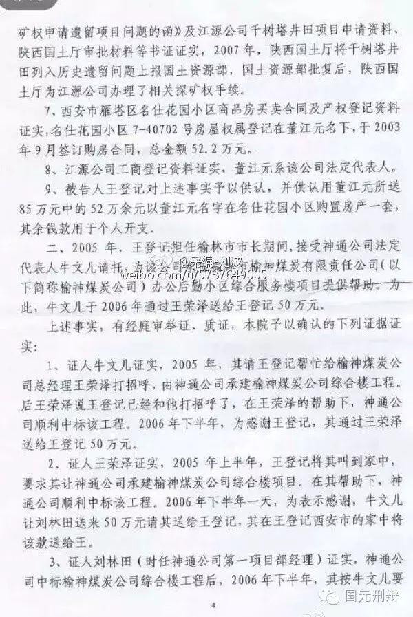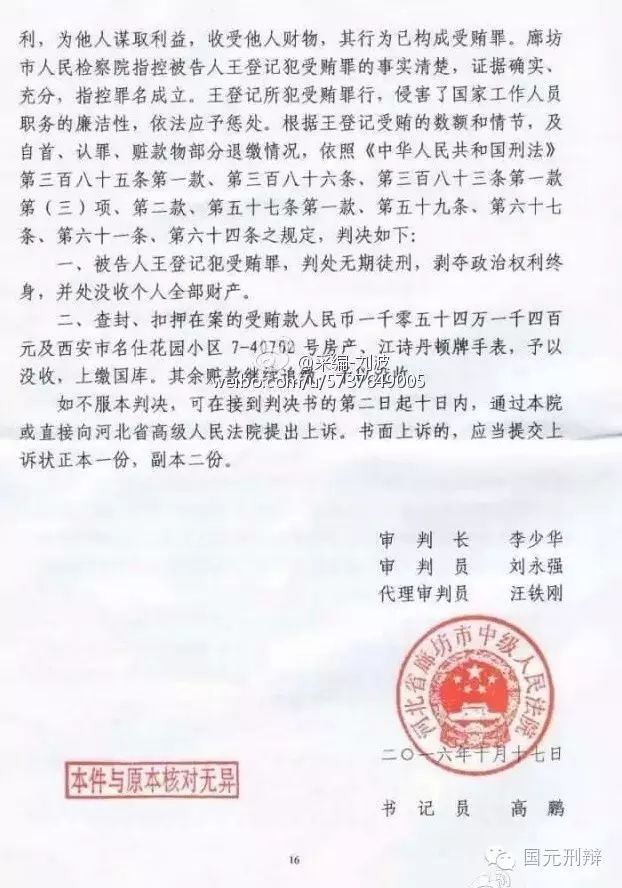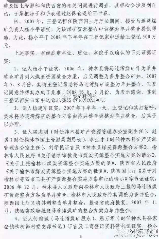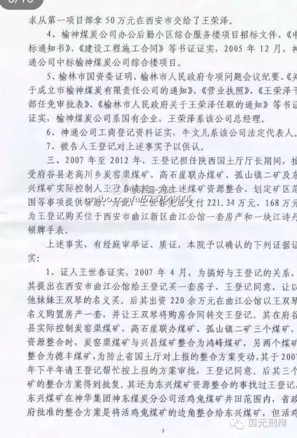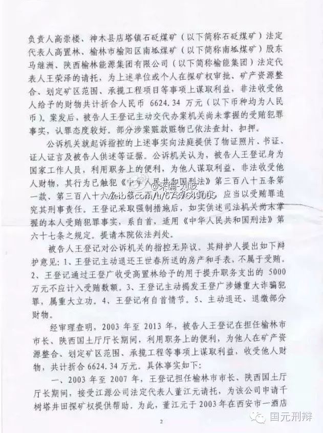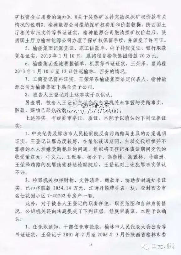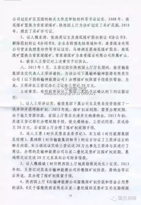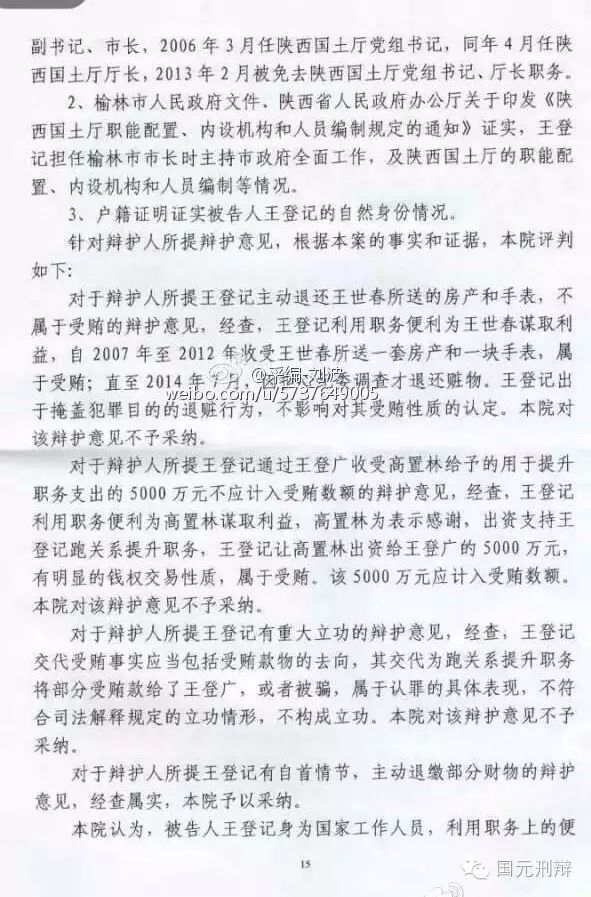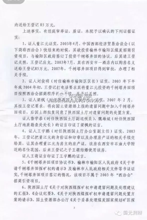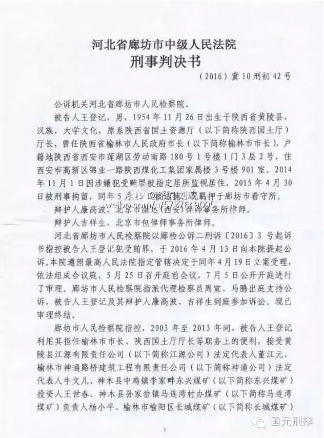 河北廊坊中院一審判決書(不全)揭秘陜西省原國(guó)土資源廳廳長(zhǎng)王登記受賄6600余萬元,其中5000萬元用于買官