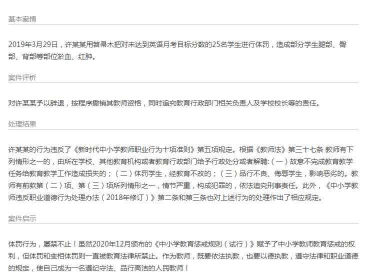 教師許某某體罰學(xué)生被辭退、撤銷教師資格,相關(guān)人員被追責(zé)