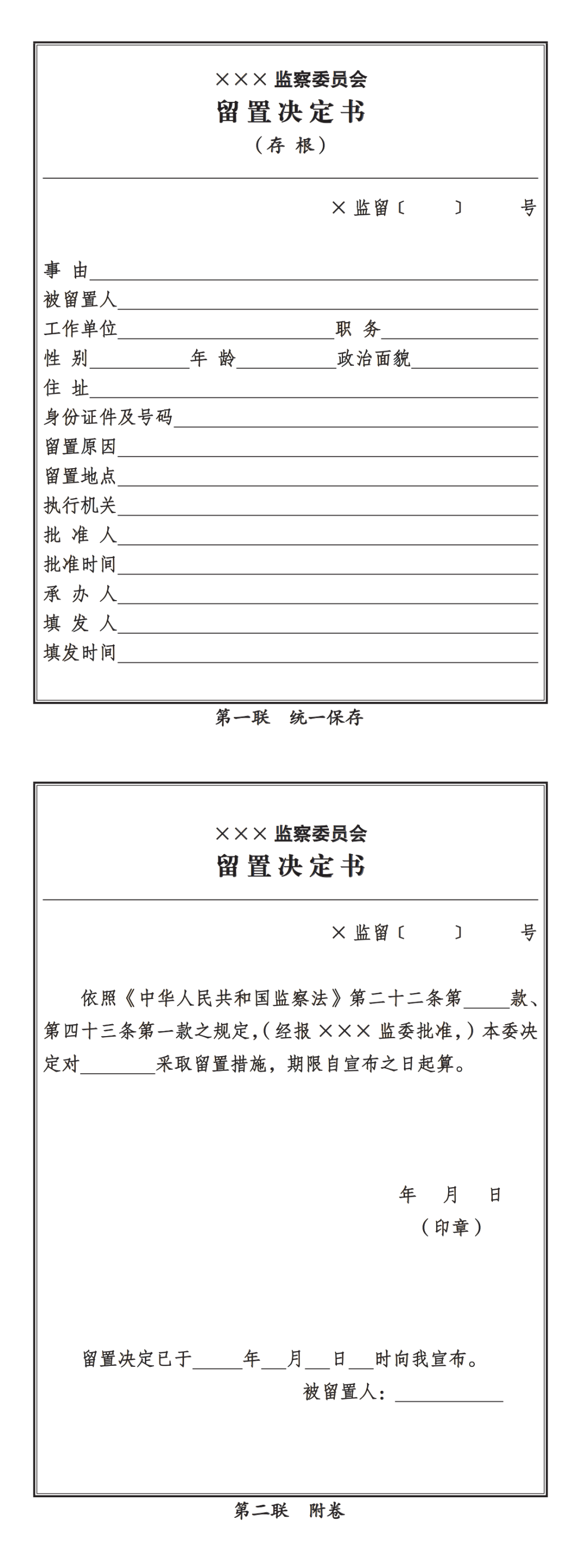 留置決定書模板