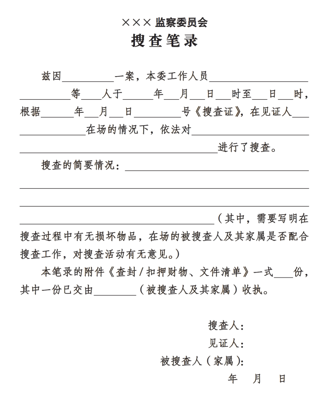 搜查筆錄模板