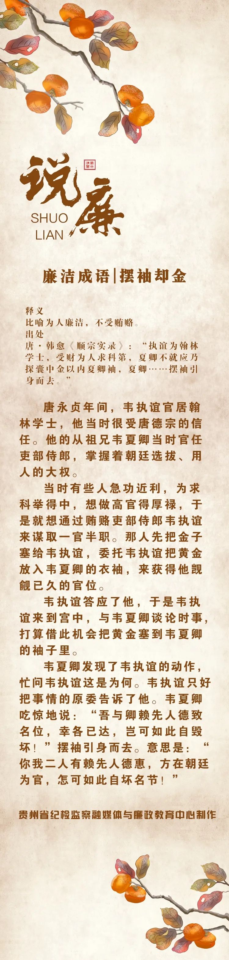 廉潔成語專題之一:擺袖卻金