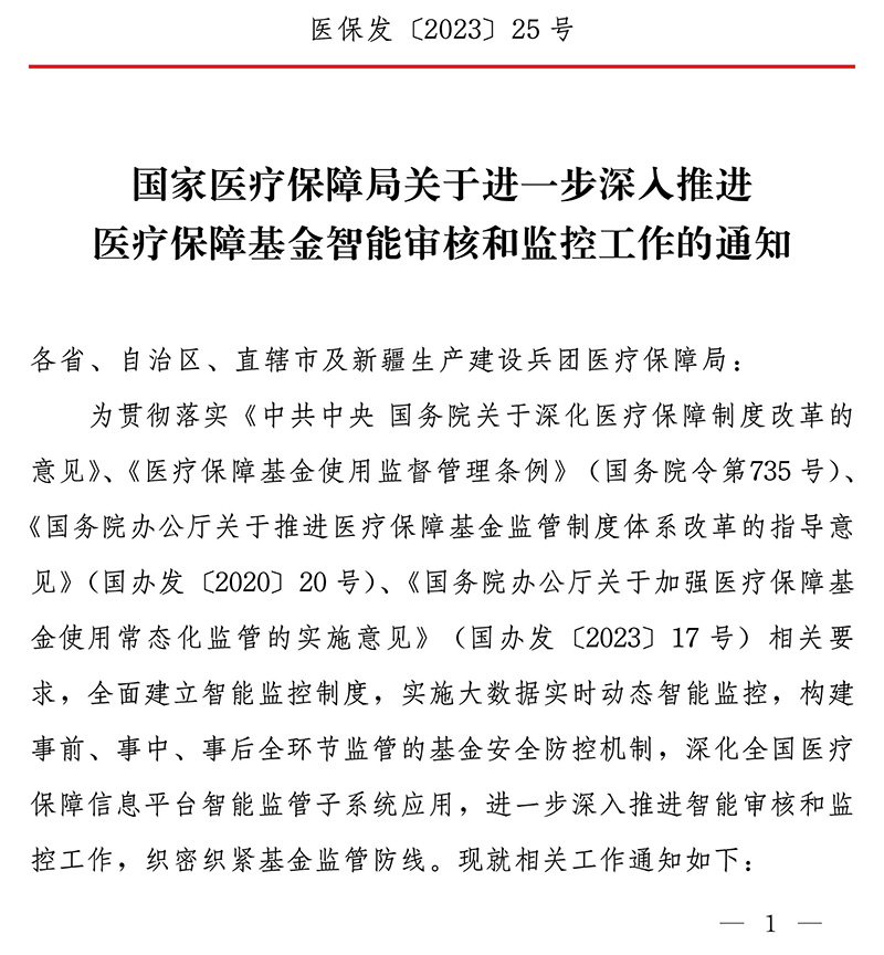 國(guó)家醫(yī)療保障局關(guān)于進(jìn)一步深入推進(jìn)醫(yī)療保障基金智能審核和監(jiān)控工作的通知