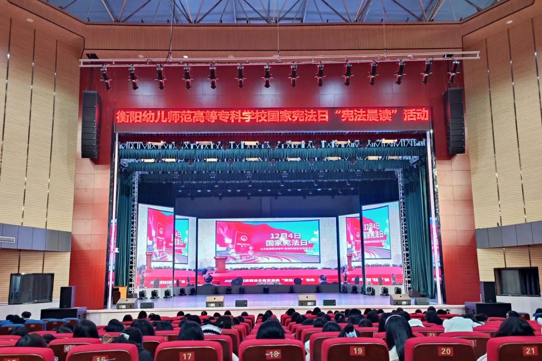 12月4日上午9:30,為迎接第十個(gè)國家憲法日,深入學(xué)習(xí)貫徹黨的二十大精神,貫徹落實(shí)習(xí)近平法治思想和習(xí)近平總書記關(guān)于憲法法治教育的重要指示精神,進(jìn)一步弘揚(yáng)憲法精神、維護(hù)憲法權(quán)威,衡陽幼兒師范高等??茖W(xué)校800余名師生代表在大禮堂通過網(wǎng)絡(luò)參加教育部舉行的國家憲法日全國大學(xué)和中小學(xué)憲法晨讀活動(dòng),其余學(xué)生在各自教室觀看直播,參與活動(dòng)。