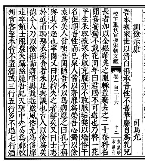 《宋朝文鑒》所收《訓(xùn)儉示康》