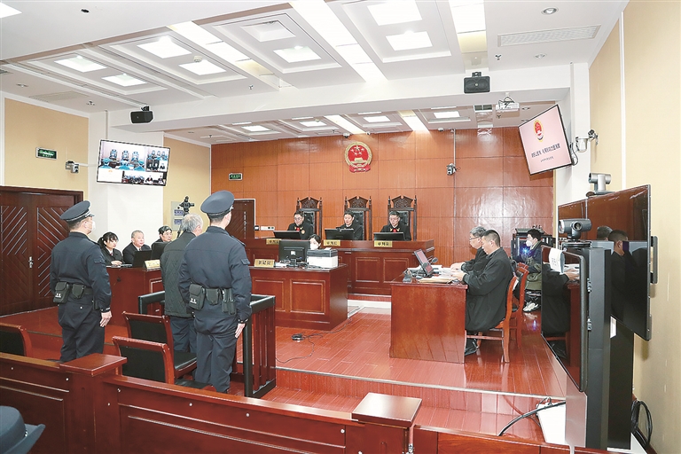 圖為2023年2月1日,謝振山涉嫌受賄罪、利用影響力受賄罪案一審?fù)彫F(xiàn)場。(安陽市中級人民法院供圖)