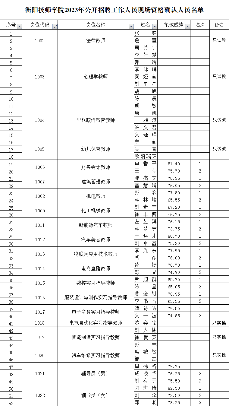根據(jù)《2023年衡陽技師學(xué)院公開招聘工作人員公告》和招聘工作進(jìn)度,現(xiàn)將現(xiàn)場(chǎng)資格確認(rèn)及面試有關(guān)事項(xiàng)公告如下: