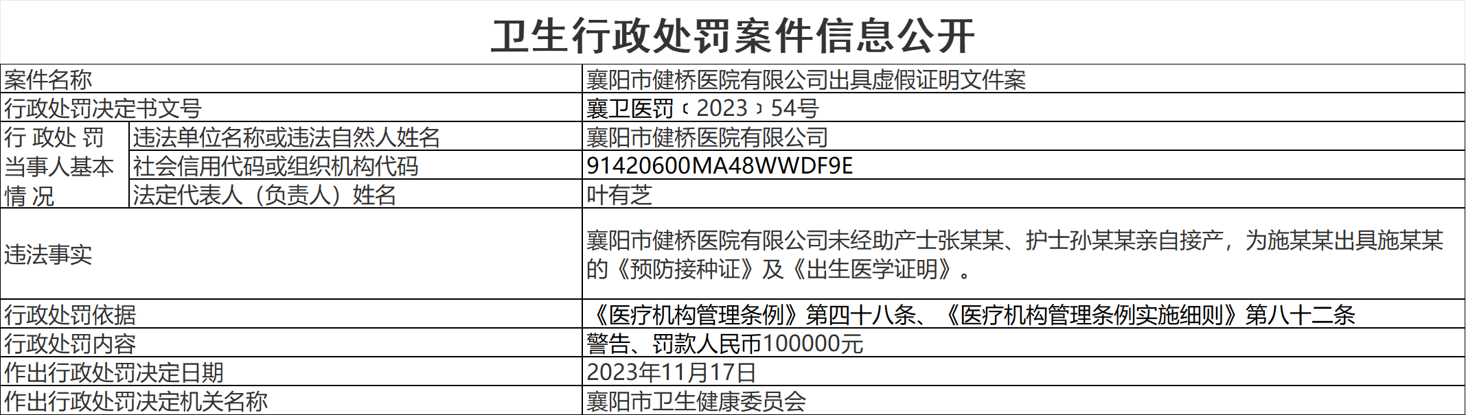 襄陽(yáng)健橋醫(yī)院販賣(mài)出生醫(yī)學(xué)證明被查處