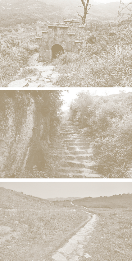 ▲桂陽太守衛(wèi)颯組織民夫開鑿的西京古道。上圖為西京古道廣東韶關(guān)段,中圖、下圖為西京古道湖南郴州段、耒陽段。