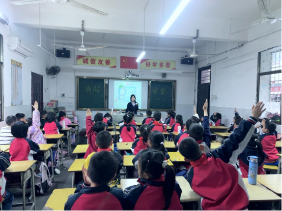 課堂上,志愿者們還現(xiàn)場教授了防拐防騙小知識以及火災逃生小常識。