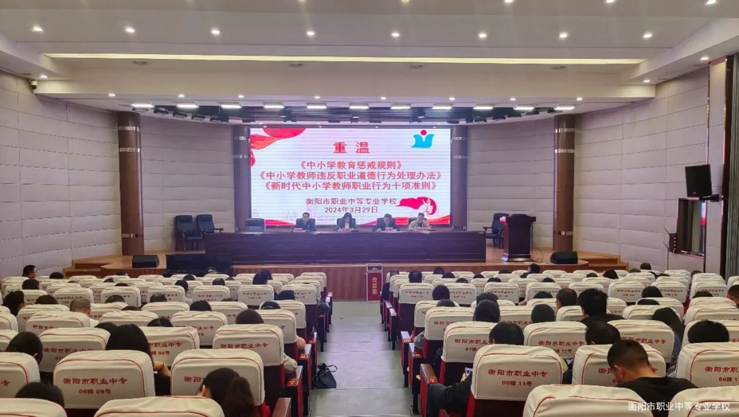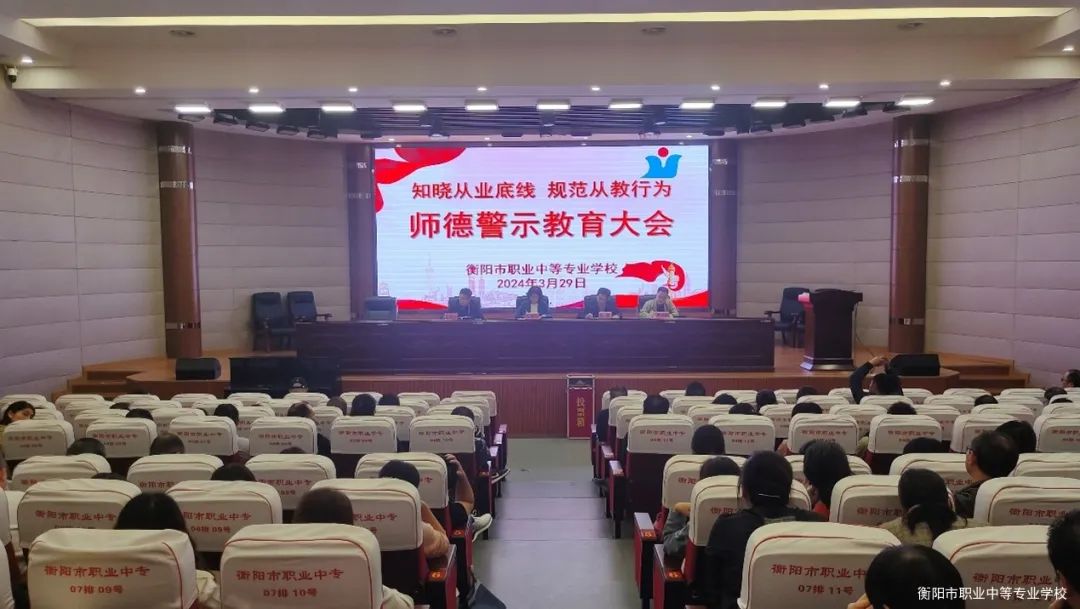 為貫徹落實(shí)衡陽(yáng)市教育局《關(guān)于在全市教育系統(tǒng)組織召開(kāi)全員師德警示教育的通知》精神,進(jìn)一步加強(qiáng)學(xué)校師德師風(fēng)建設(shè),提升教師的思想政治素質(zhì)和職業(yè)道德水平,3月29日下午,衡陽(yáng)市職業(yè)中等專業(yè)學(xué)校在多功能報(bào)告廳召開(kāi)了“知曉從業(yè)底線 規(guī)范從教行為”師德警示教育大會(huì),會(huì)議由校長(zhǎng)鄒鵬主持,全體教職員工參加。
