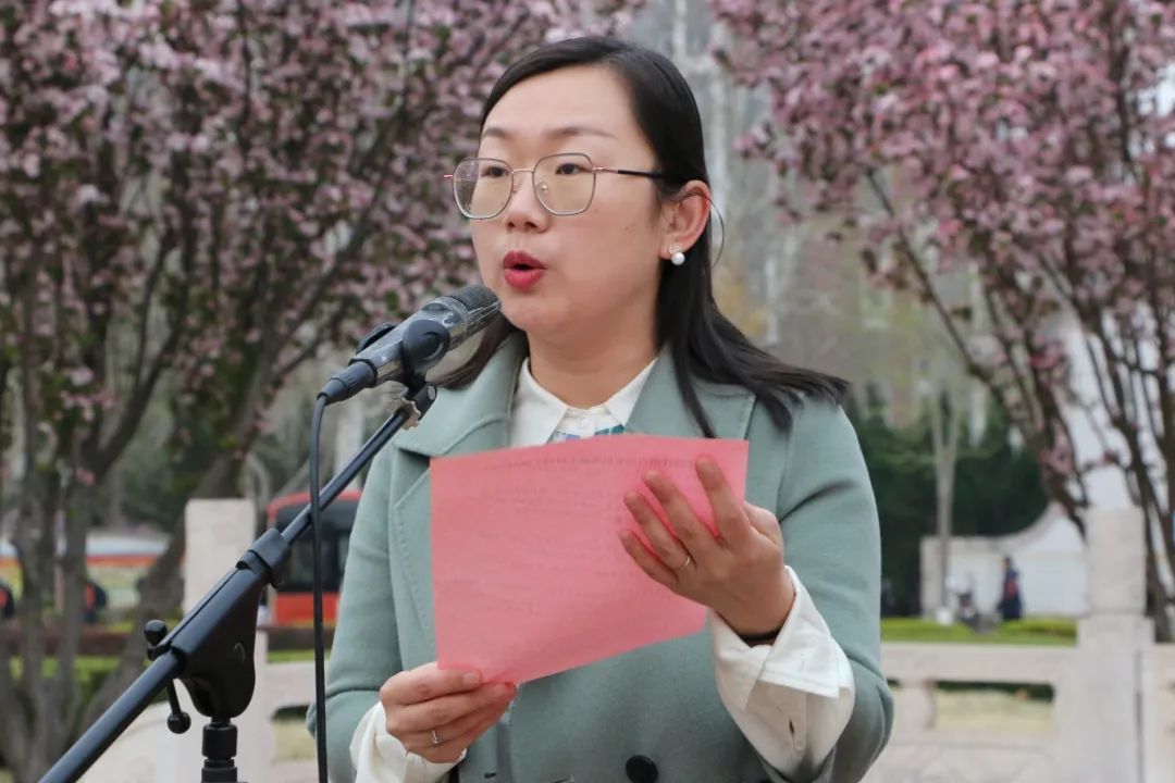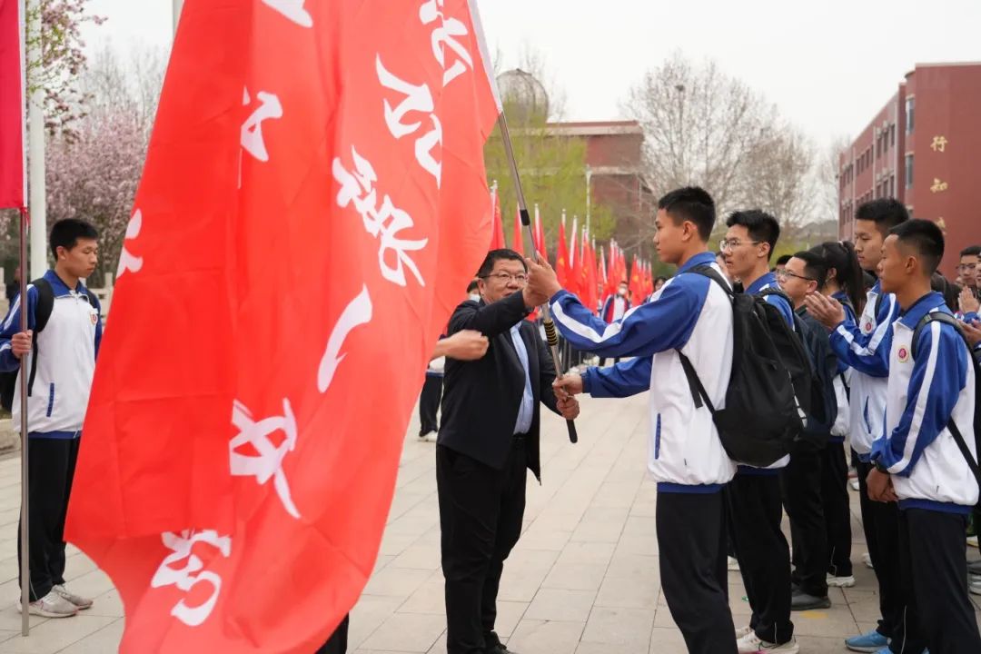 出征儀式由團(tuán)委書記張瑩主持,活動(dòng)在莊嚴(yán)的國(guó)歌聲中拉開帷幕。副校長(zhǎng)張衍兵鄭重地將團(tuán)旗和校旗授予各班級(jí)代表,象征著責(zé)任和榮譽(yù)的傳承。隨后,年級(jí)領(lǐng)導(dǎo)為各班授班旗。