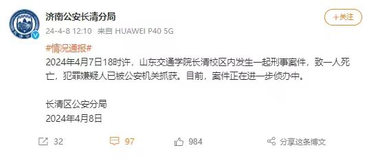 山東交通學(xué)院長(zhǎng)清校區(qū)發(fā)生一起刑事案件致一人死亡