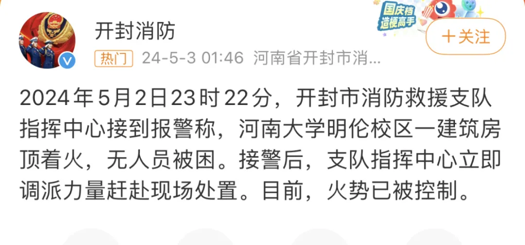 5月2日,河南大學(xué)明倫校區(qū)大禮堂發(fā)生火災(zāi)事故,影響重大。國務(wù)院安委會決定,對該起火災(zāi)事故查處實行掛牌督辦,并派出督辦組赴當(dāng)?shù)囟酱僦笇?dǎo)河南省調(diào)查組工作,要求科學(xué)嚴謹盡快查明事故原因,依法依規(guī)嚴肅追責(zé)問責(zé)。