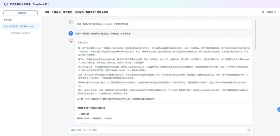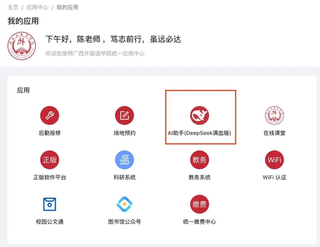 DeepSeek滿血版廣西外國語學院應用大模型全面上線
