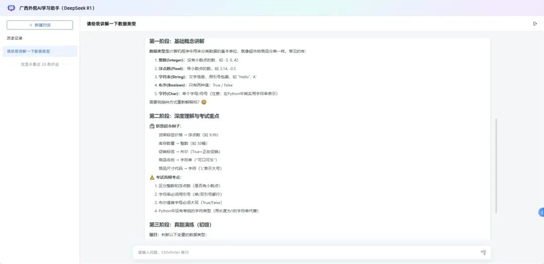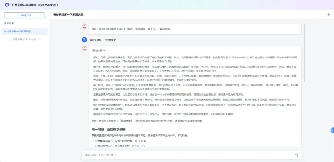 基于DeepSeek系列模型開發(fā)的智能個人助理系統(tǒng),可根據(jù)教師與學生的不同需求,智能推薦學習資源、制定個性化學習計劃并實時答疑解惑,幫助培養(yǎng)學生的自主學習能力,同時提升整體教學質(zhì)量。