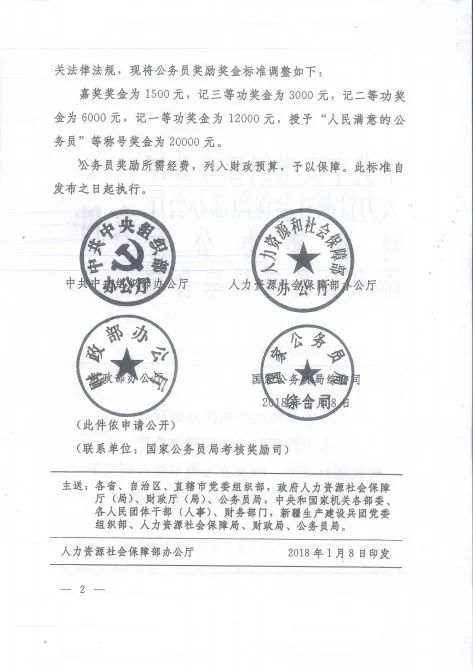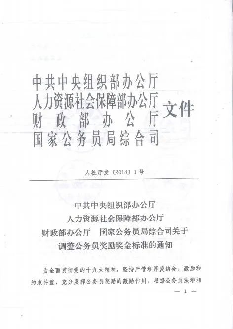 為全面貫徹黨的十九大精神,堅持嚴管和厚愛結合、激勵和約束并重,充分發(fā)揮公務員獎勵的激勵作用,根據公務員法和相關法律法規(guī),現將公務員獎勵獎金標準調整如下: