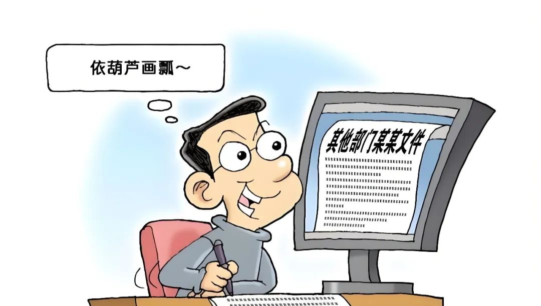 公文材料的每一個數(shù)據(jù)、每一處表述,都可能影響一個地方、一項事業(yè)的發(fā)展,容不得半點馬虎。但上網(wǎng)隨手一搜,文件材料、領(lǐng)導講話、宣傳標語等照搬照抄的情況并不是只存在于一地一城。不同地方宣傳廣告牌撞車現(xiàn)象已經(jīng)屢有發(fā)生,連自己的地名都能寫錯;同一個會場,參會人員的發(fā)言撞車也不鮮見;甚至在一些整改整頓中,個人對照檢查材料也能照搬照抄。