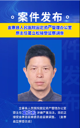 金寨縣人民醫(yī)院固定資產(chǎn)管理辦公室原主任葛立松涉嫌嚴(yán)重違法,目前正接受金寨縣監(jiān)察委員會監(jiān)察調(diào)查。
