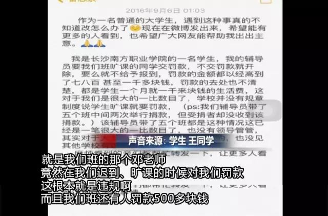 涉事輔導(dǎo)員承認(rèn):罰款制度系自己制定