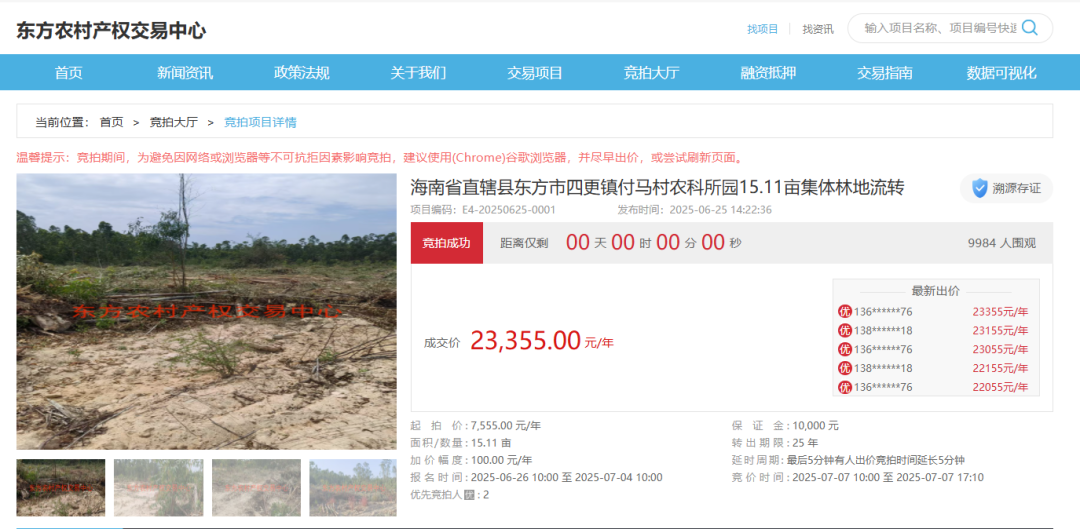 為解決傳統(tǒng)土地流轉(zhuǎn)“多頭跑、反復(fù)跑”的難題,市農(nóng)業(yè)農(nóng)村局以“機(jī)器管三資”為核心,構(gòu)建起農(nóng)村集體“三資”監(jiān)管長(zhǎng)效機(jī)制,依托數(shù)字化監(jiān)管平臺(tái),不僅實(shí)現(xiàn)土地流轉(zhuǎn)規(guī)范化、透明化,還借助大數(shù)據(jù)分析為村集體提供資源盤活建議,在產(chǎn)業(yè)布局規(guī)劃、招商引資等方面提供精準(zhǔn)化服務(wù)。通過(guò)制定詳細(xì)交易規(guī)則和流程,依托信息化平臺(tái)實(shí)現(xiàn)項(xiàng)目信息發(fā)布、報(bào)名競(jìng)價(jià)、結(jié)果公示全流程線上操作;同時(shí)整合土地流轉(zhuǎn)意向確認(rèn)、合同規(guī)范簽訂、權(quán)屬變更登記、融資需求對(duì)接等環(huán)節(jié),打造“一站式”服務(wù)體系,真正做到讓群眾“只進(jìn)一扇門、最多跑一次”。截至目前,東方農(nóng)村產(chǎn)權(quán)交易中心已累計(jì)成交77宗項(xiàng)目,交易額達(dá)3.05億元,累計(jì)為村集體增收超5000萬(wàn)元,顯著提升了農(nóng)村集體資產(chǎn)的價(jià)值;已高效核發(fā)土地經(jīng)營(yíng)權(quán)不動(dòng)產(chǎn)權(quán)證書25本,為土地流轉(zhuǎn)提供了法律保障;同時(shí)土地經(jīng)營(yíng)權(quán)抵押貸款授信超1470萬(wàn)元,有效緩解了農(nóng)村“融資難”的問(wèn)題。