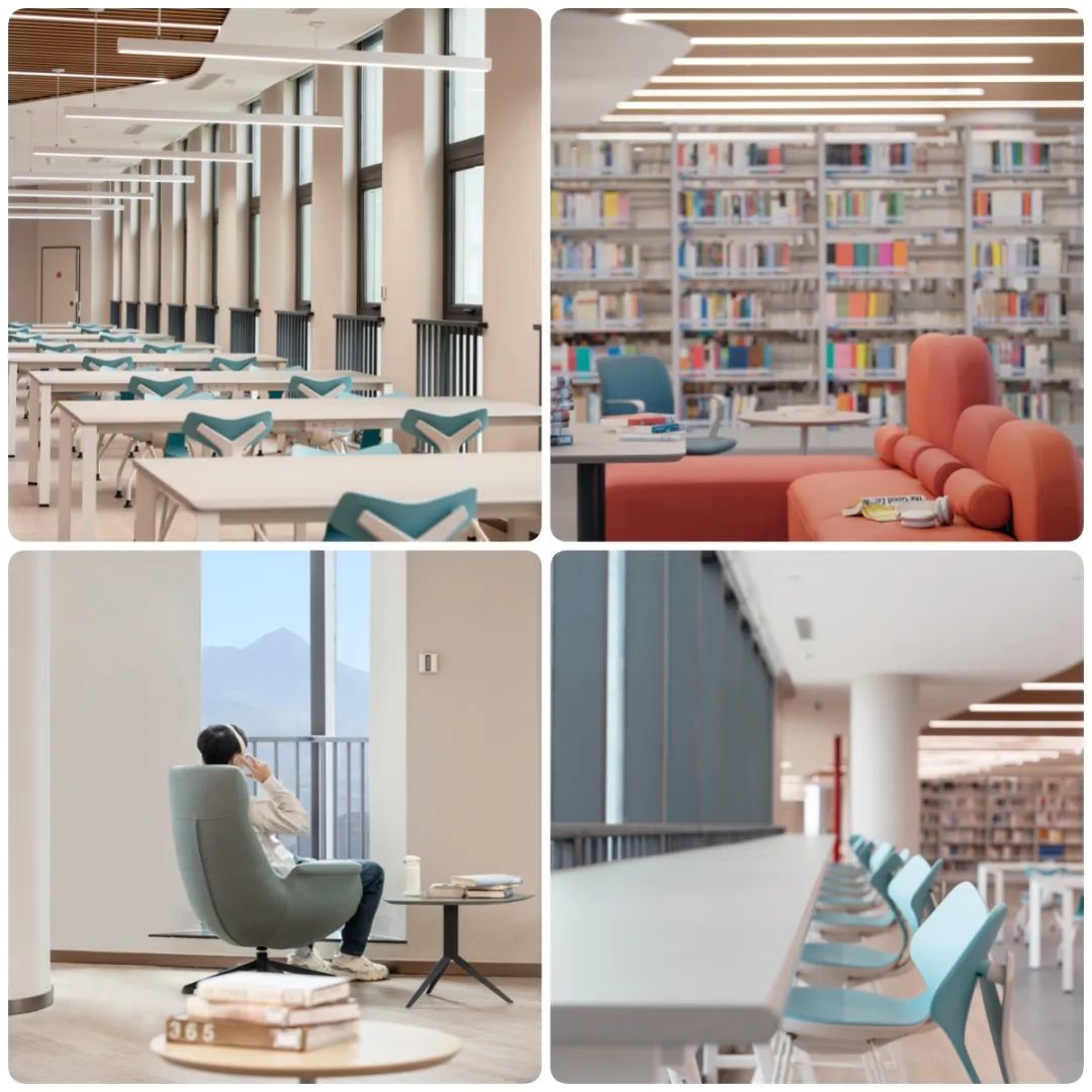 圖書館采用“動靜分層”的布局設計配備了多元的學習空間,通過樓層垂直分區(qū)滿足同學們多樣的學習需求。