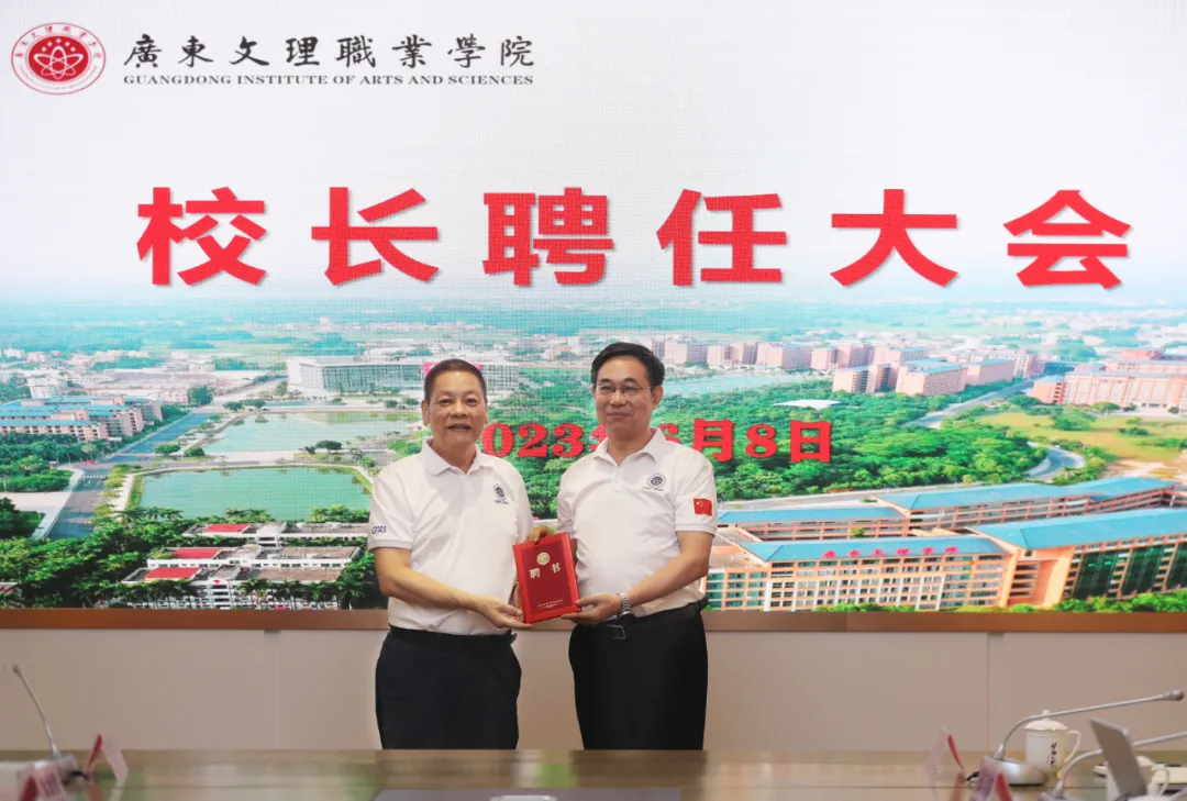 董事長宣承志為劉明貴校長(右)頒發(fā)聘書
