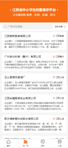 記者注意到,平臺設有“查廠商”功能,用戶可便捷查詢校服生產(chǎn)企業(yè)的簡介、法人代表、聯(lián)系方式、資質(zhì)認證等詳細信息,并查看該企業(yè)展示的全部校服款式,確保生產(chǎn)環(huán)節(jié)公開透明。“資訊”板塊則主要發(fā)布江西省中小學生校服相關(guān)的政策動態(tài)等權(quán)威訊息。此外,有意向的校服生產(chǎn)企業(yè)可通過平臺“入駐”板塊獲取注冊網(wǎng)址,上傳產(chǎn)品、展示實力,面向全省學校和學生家長進行推廣。
