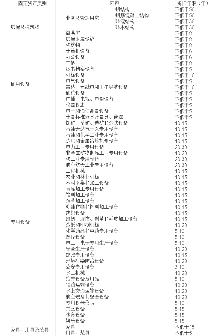 (一)通常情況下,政府會計(jì)主體應(yīng)當(dāng)按照表1規(guī)定確定各類應(yīng)計(jì)提折舊的固定資產(chǎn)的折舊年限。