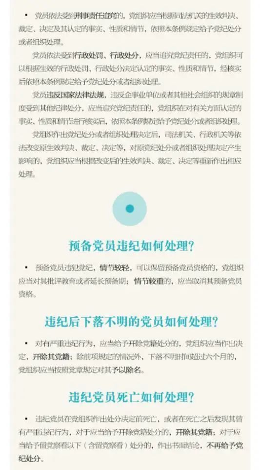 第三十六條 違紀黨員在黨組織作出處分決定前死亡,或者在死亡之后發(fā)現(xiàn)其曾有嚴重違紀行為,對于應當給予開除黨籍處分的,開除其黨籍;對于應當給予留黨察看以下(含留黨察看)處分的,作出違犯黨紀的書面結(jié)論和相應處理。