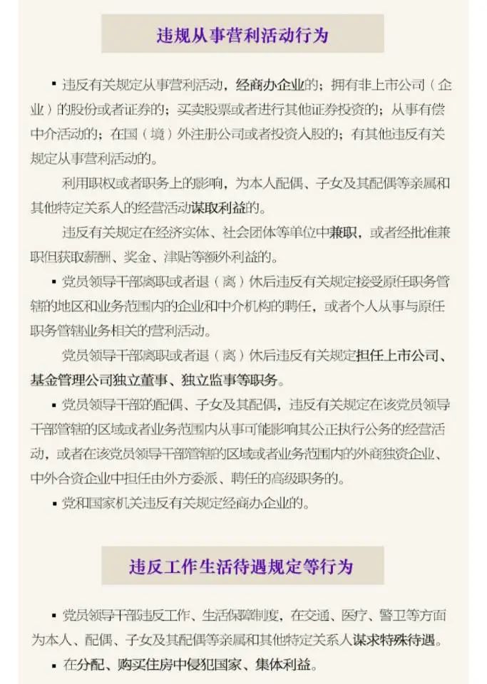 “造成不良影響或者嚴重后果”主要包括黨員領導干部配偶、子女及其配偶利用其職權(quán)或職務上的影響謀取私利,利用家庭成員身份插手領導干部職權(quán)范圍內(nèi)的工作、人事安排,違反規(guī)定從業(yè),違規(guī)領取薪酬,違反社會公序良俗以及違法犯罪等造成不良影響和嚴重后果的行為。