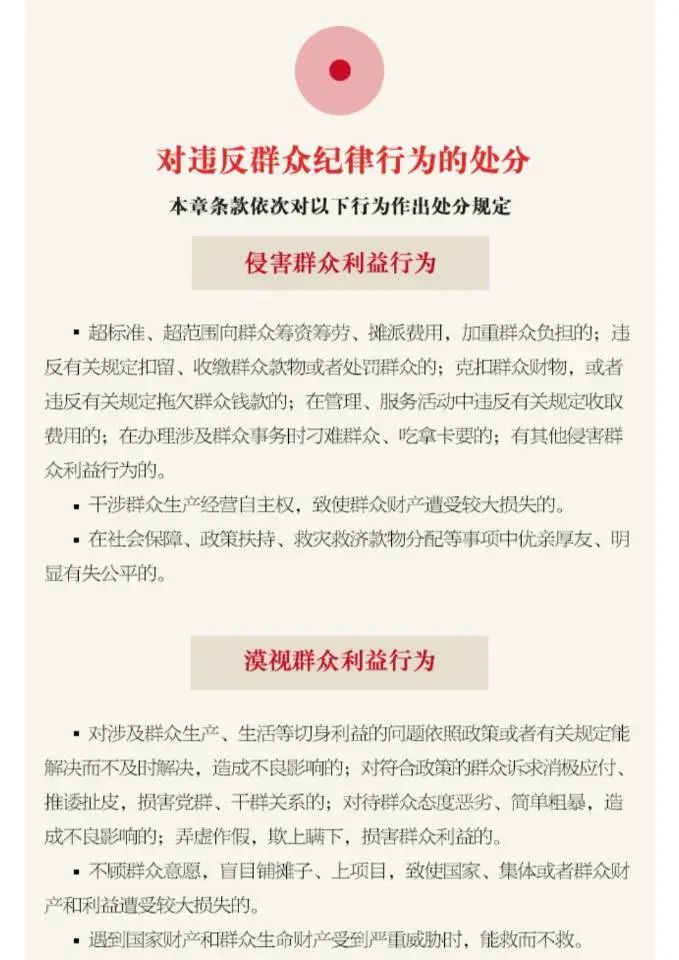 第一百一十四條 在社會保障、政策扶持、扶貧脫貧、救災救濟款物分配等事項中優(yōu)親厚友、明顯有失公平的,給予警告或者嚴重警告處分;情節(jié)較重的,給予撤銷黨內(nèi)職務或者留黨察看處分;情節(jié)嚴重的,給予開除黨籍處分。