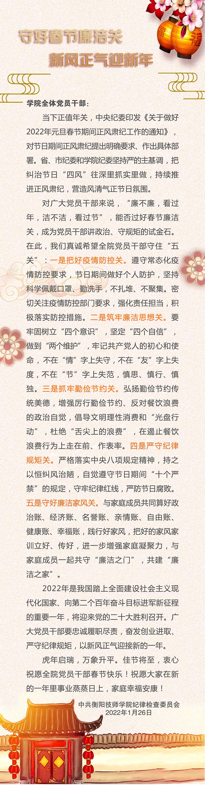 院紀委致信全體黨員干部:守住春節(jié)廉潔關(guān),新風(fēng)正氣迎新年